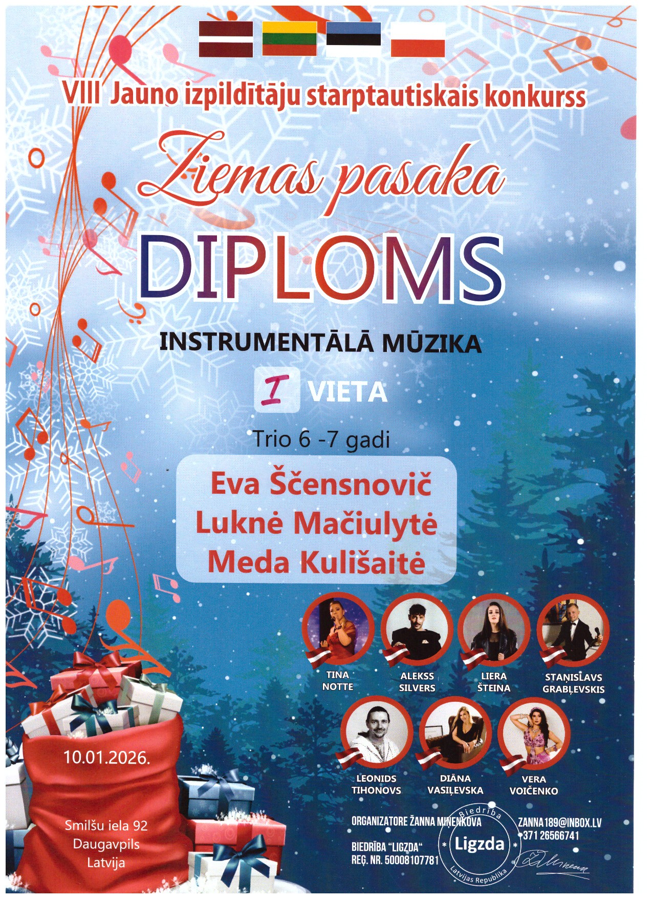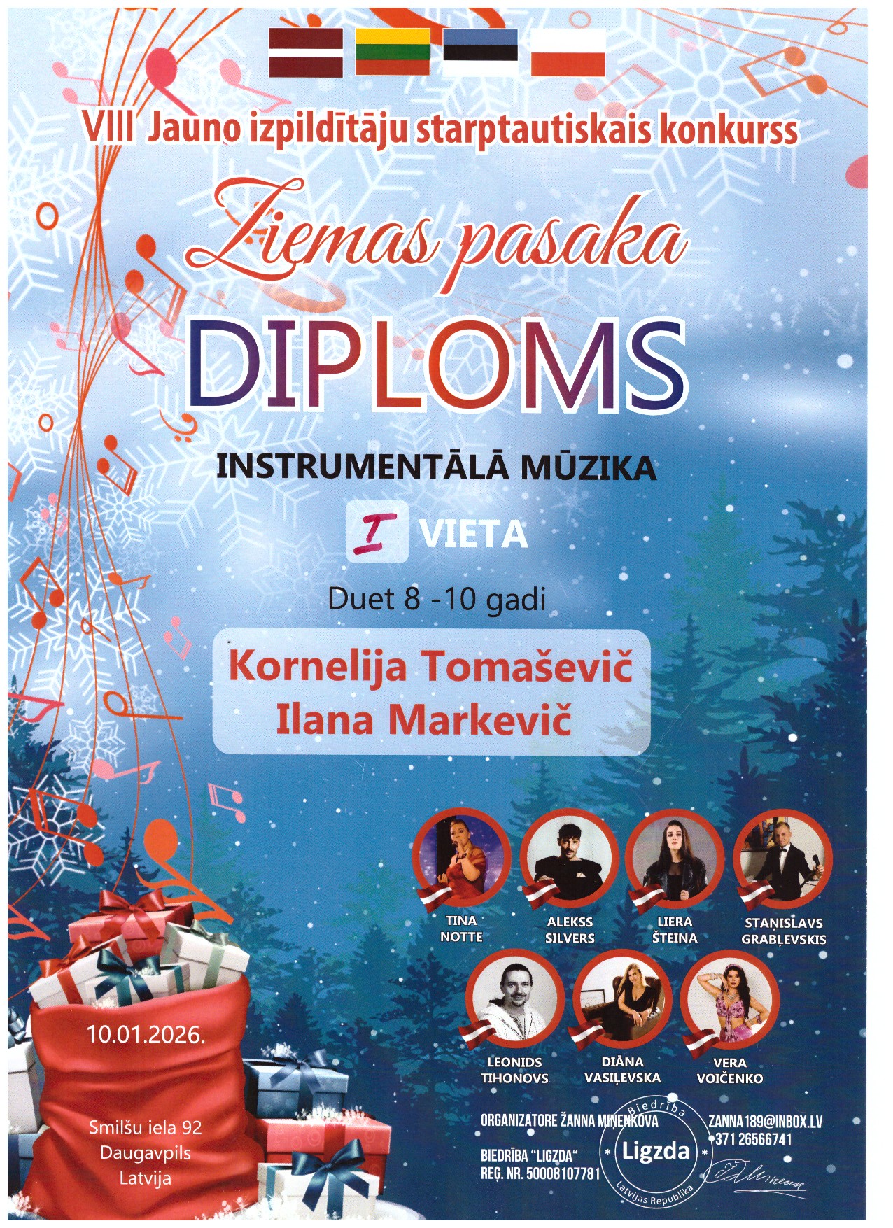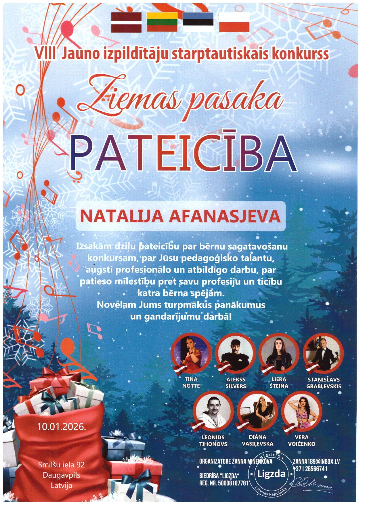 2026 m. sausio 10 d. Latvijos mieste Daugpilyje vyko VIII tarptautinis jaunųjų atlikėjų konkursas „Žiemos pasaka“, subūręs talentingus jaunuosius muzikantus iš įvairių šalių. Į šį konkursą atstovauti Šalčininkų r. Jašiūnų muzikos mokyklai išvyko fortepijono skyriaus mokytojos metodininkės Natalijos Afanasjevos parengti mokiniai.