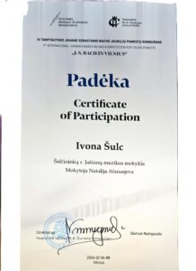 Nuoširdžiai dėkojame mokinei Ivonai Šulc už drąsą, atsakingą pasirengimą ir atstovavimą mokyklai, o mokytojai Natalijai Afanasjevai – už kryptingą darbą ir profesionalų mokinės paruošimą konkursui. Tokie konkursai ugdo meninį atsparumą, skatina tobulėti ir stiprina motyvaciją siekti aukštesnių tikslų. Linkime Ivonai ir toliau atkakliai siekti muzikinių aukštumų, nebijoti iššūkių ir su kiekvienu pasirodymu vis labiau augti kaip atlikėjai.