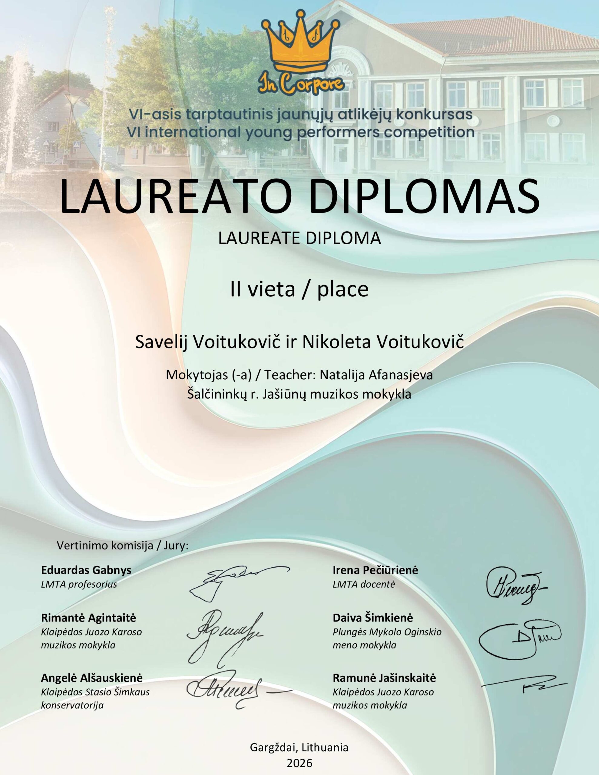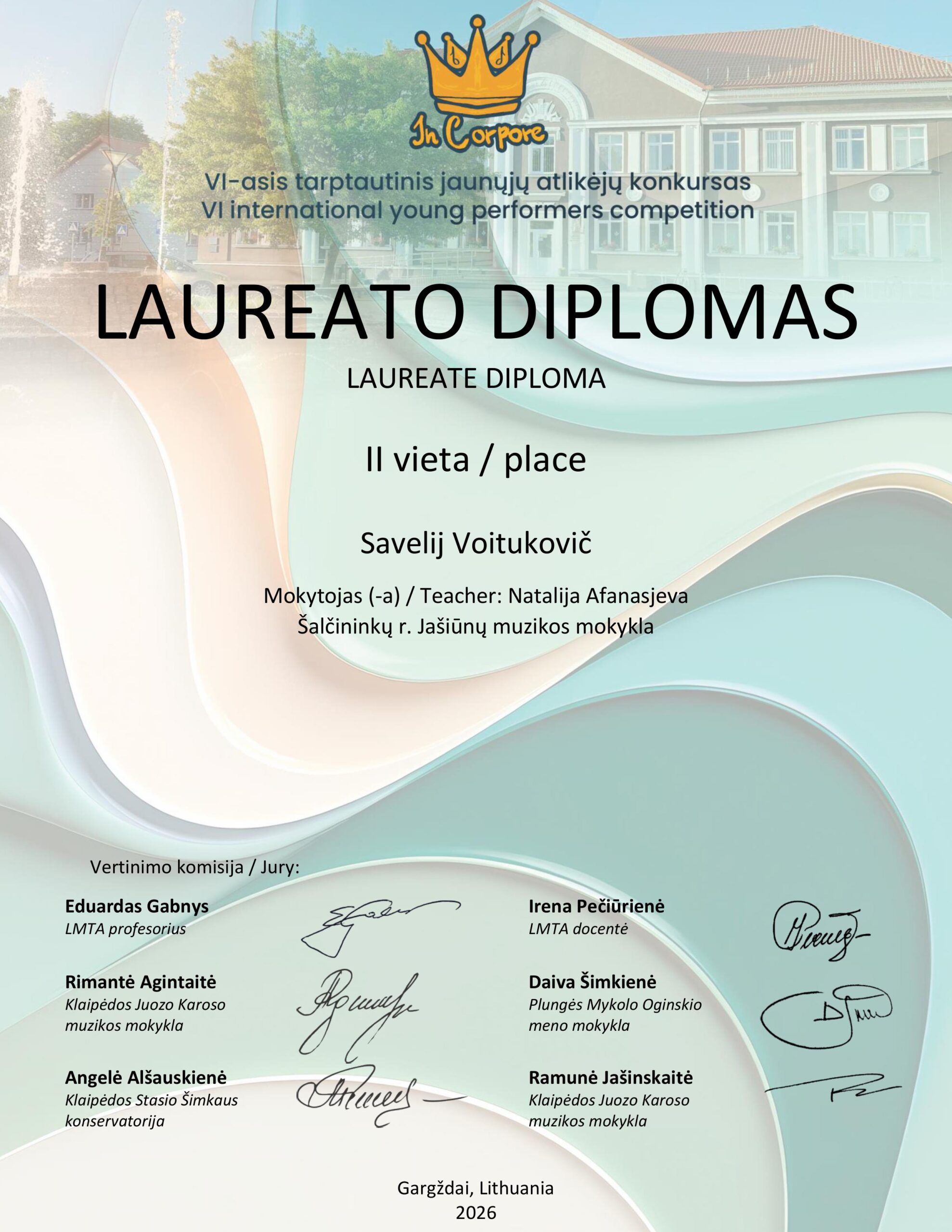 2026 m. kovo 6 d. Gargždų muzikos mokykloje vyko tarptautinis jaunųjų atlikėjų konkursas „In Corpore“, subūręs itin gausų dalyvių būrį – net apie 300 jaunųjų muzikantų iš Lietuvos ir Latvijos. Konkursas buvo organizuojamas mišriu būdu: dalyviai galėjo pasirodyti gyvai arba nuotoliniu formatu.