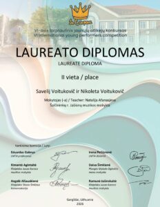 Džiugu, kad šiame konkurse nuotoliniu būdu dalyvavo ir Jašiūnų muzikos mokyklos mokytojos metodininkės Natalijos Afanasjevos mokiniai. Savelij Voitukovič solistų kategorijoje pelnė II vietos laureato diplomą. Taip pat sėkmingai pasirodė fortepijoninis ansamblis – Savelij Voitukovič ir Nikoleta Voitukovič, kurie ansamblių kategorijoje taip pat buvo įvertinti II vietos laureato diplomu.