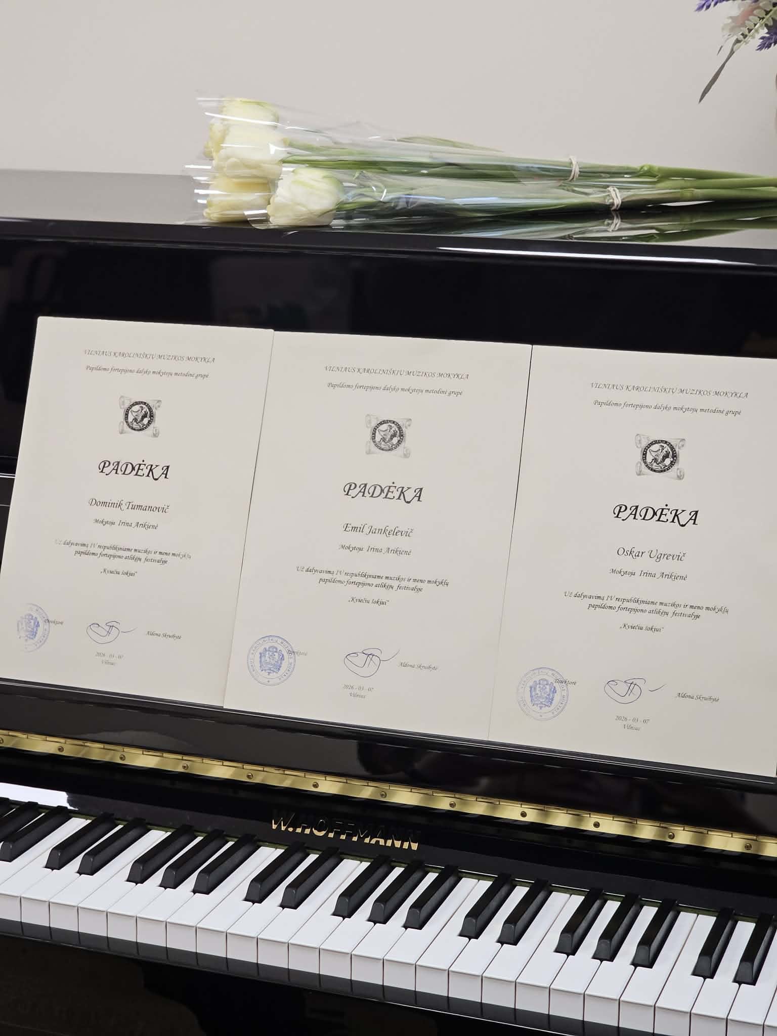 Didžiuojamės mūsų mokiniais ir dėkojame mokytojai už jų paruošimą. Linkime jauniesiems pianistams ir toliau augti, tobulėti bei džiuginti klausytojus muzika!