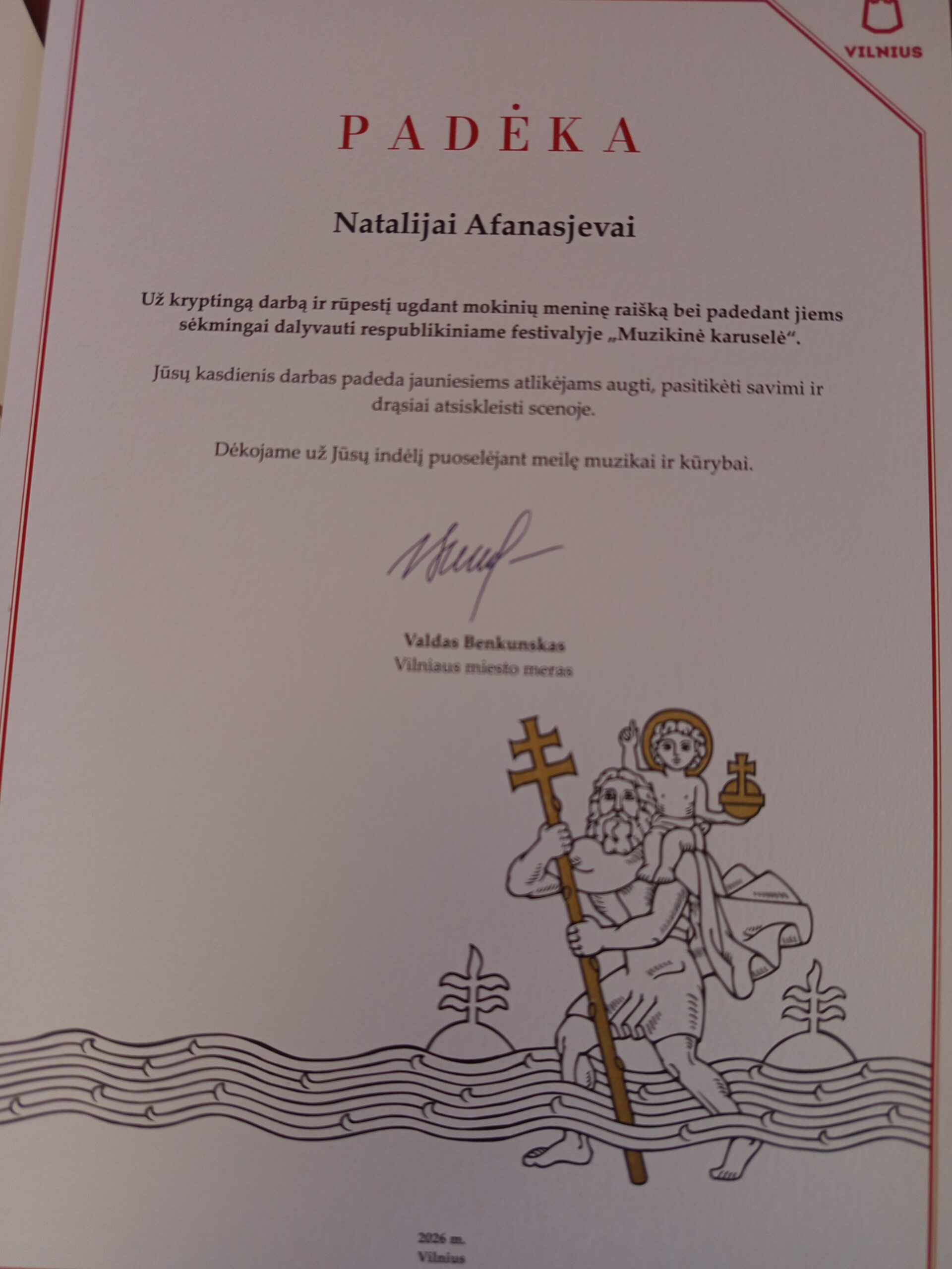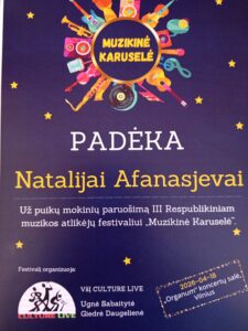Džiaugiamės mokytojos Natalijos Afanasjevos ir jos mokinių pasirodymu šiame renginyje. Linkime ir toliau aktyviai dalyvauti muzikiniuose projektuose, kaupti sceninę patirtį ir siekti naujų kūrybinių pasiekimų!